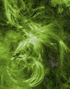 Mielőtt azonban elérték volna a szolgát a szoba kivilágosodott. Előbb halvány majd egyre erősebb smaragd színben fürösztötte a kastély termeit egy különös erő, ami a szobákban lebegő kristályokból áradt szét. Kívülről úgy látszott, hogy minden ablakból zöld tüskék nőnek ki az éjszakai égre a kastélyból, odabent felperzselte a szőrt, megolvasztotta a fémet és felhólyagosította a bőrt ez a kegyetlen lidércfény.